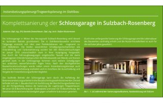 Komplettsanierung der Schlossgarage in Sulzbach-Rosenberg Die Schlossgarage wird im laufenden Betrieb grundsaniert. Die in Stahlbetonbauweise errichtete Tiefgarage erstreckt sich über zwei Parkdeckebenen mit insgesamt ca. 220 Stellplätzen. Der laufende
